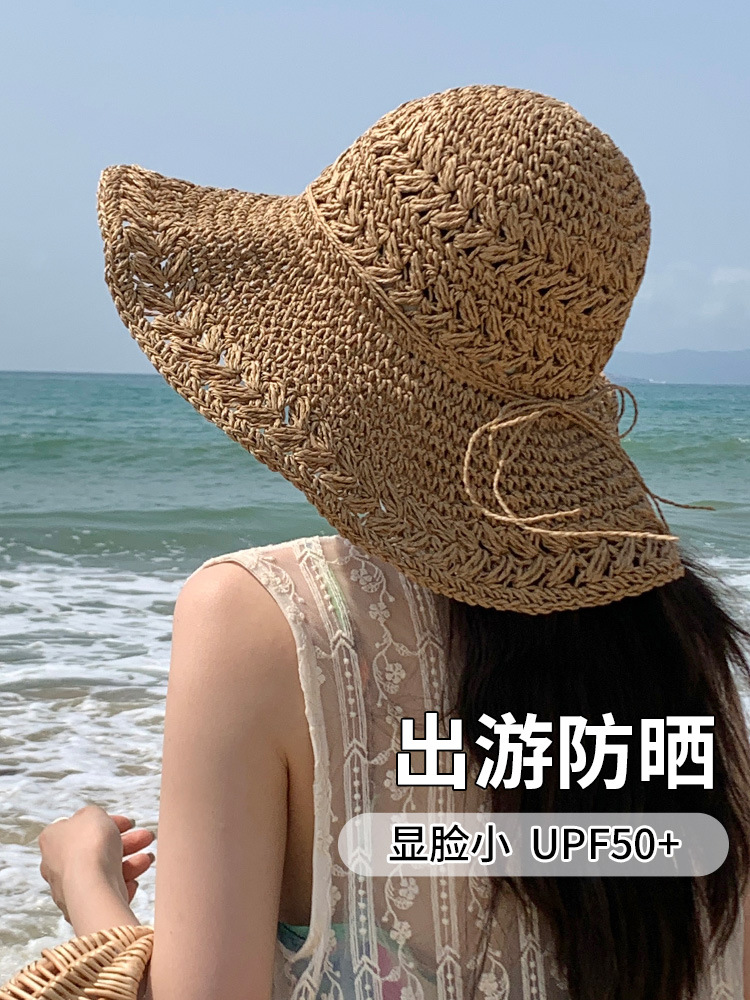 インターネットセレブ麦わら帽子女性の夏のビーチ帽子夏韓国語版多用途小さな新鮮な海辺の旅行漁師の帽子日焼け止めと日よけ