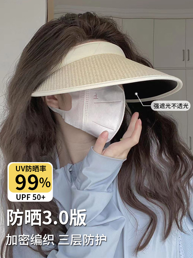 Wanwanと同じスタイルのサンシェードヘッドバンドスタイルの女性用空のトップ日焼け止め帽子、UV保護、顔を覆う大きなつばの夏用日よけ帽子