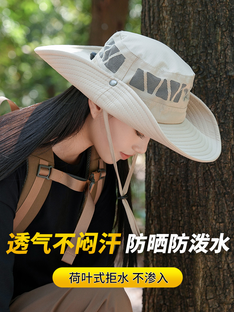 大きなつばのハイキング帽子メンズ夏アウトドアウエスタンカウボーイハイキングサンシェード日焼け止め通気性速乾性フィッシャーマンハット女性用