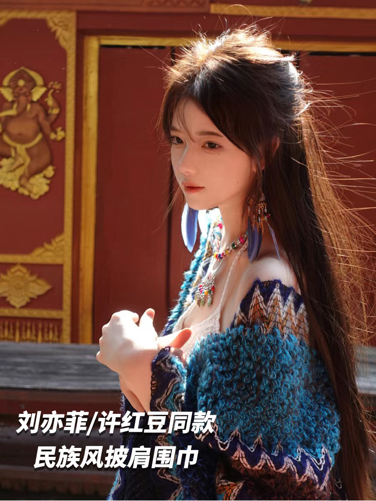 劉亦菲は風の強いところへ行く、同じスタイルのショールと女性のエスニックスタイルのマント、徐紅豆、新疆、雲南大理
