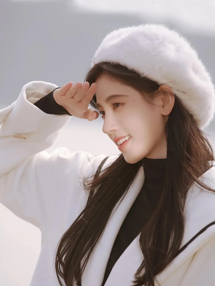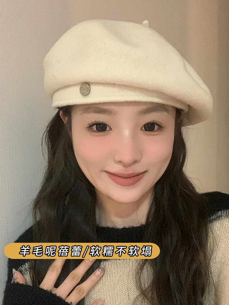 Jue Jingyiと同じスタイルの白いウサギの毛皮の豪華な八角形ベレー帽、女性用、秋冬の気質、暖かい韓国画家の帽子