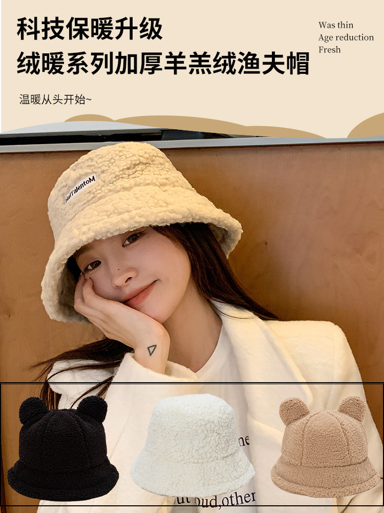 2025 新しい漁師の帽子女性の秋と冬のラムウールハイエンド白ぬいぐるみ顔が見える小さな多用途冬の帽子