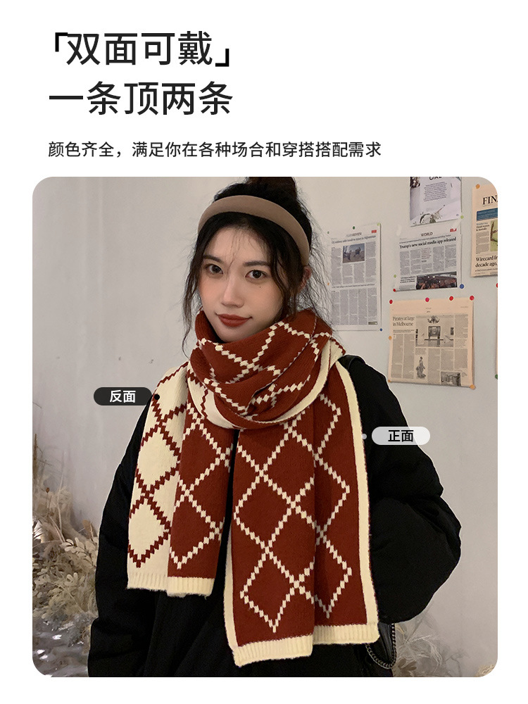 赤いチェック柄スカーフ女性の秋と冬のハイエンド多用途クリスマス誕生日ギフト新年ウールニットスカーフ