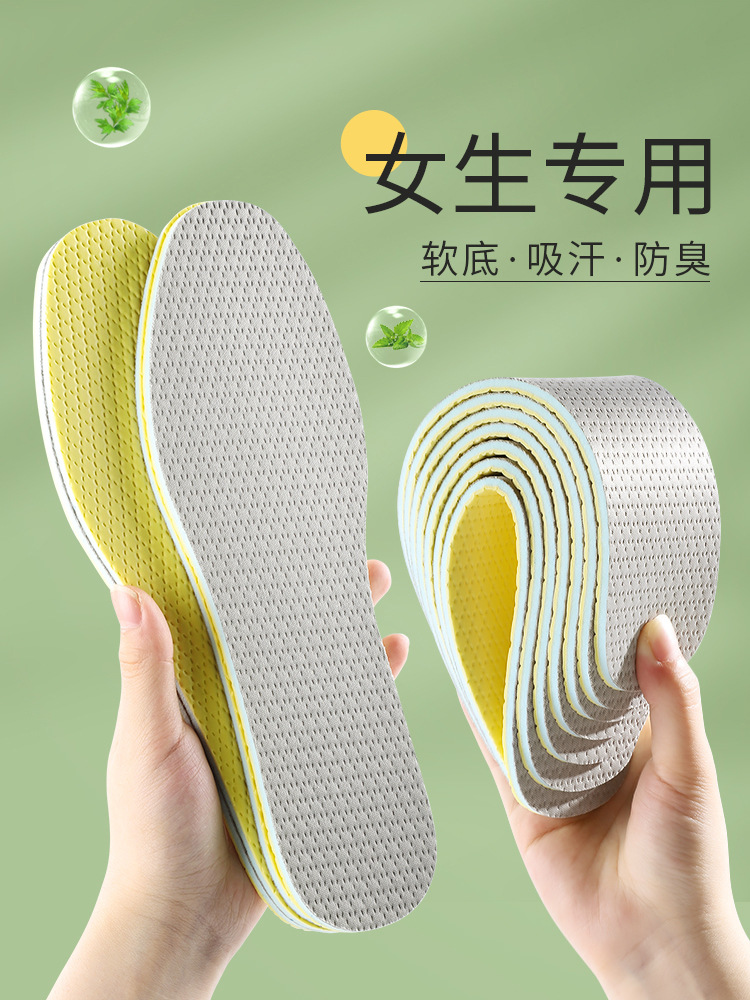 女性用4Dマッサージインソール、吸汗性、通気性、よもぎ消臭、軍事訓練、長時間立っても疲れにくい、超柔らかく快適なスポーツ夏
