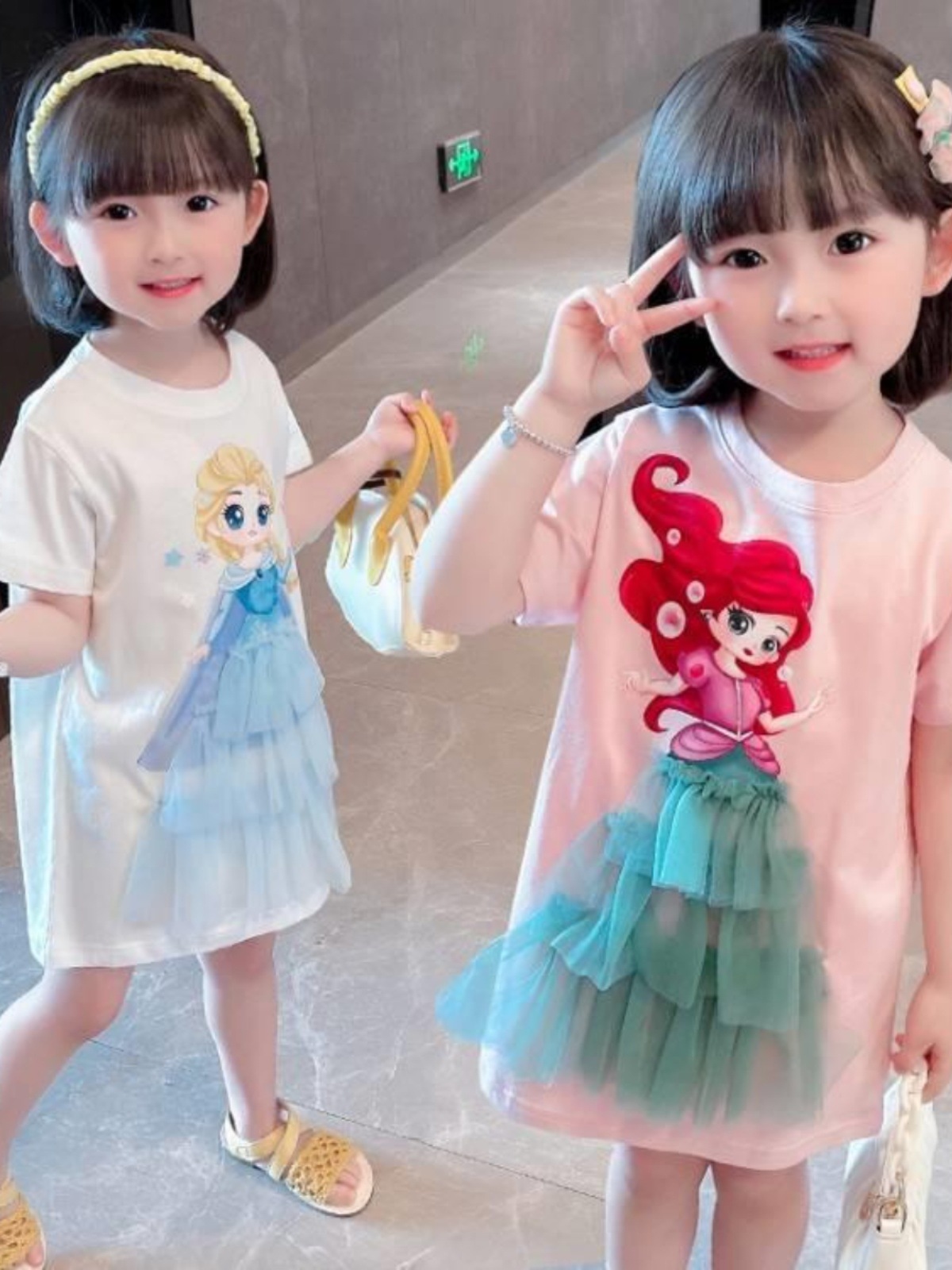 2 女の赤ちゃん夏服インターネットセレブ半袖 Tシャツスカート夏の女の子プリンセスガール女性夏 1-3 歳 5 ドレス