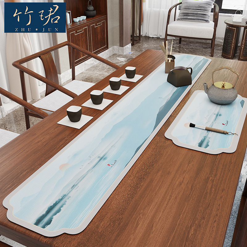 新しい中国風のロングティーマット、吸水性、洗濯不要の禅テーブルフラッグ、中国風のティーテーブルマット、ティーテーブル防水ティーカバーアクセサリー