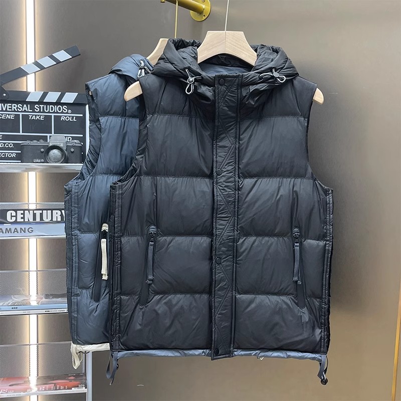 高级感メンズダウンベスト秋冬厚手ベスト潮カン肩アウターメンズカジュアルカジュアルフード付きベスト