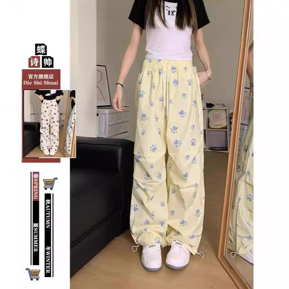 越境犬の爪のプリントの山本のズボンのカジュアルなスポーツのズボンの女性の秋冬の新型の高い腰の垂直感はやせているストレートの広腿のズボンを現します。