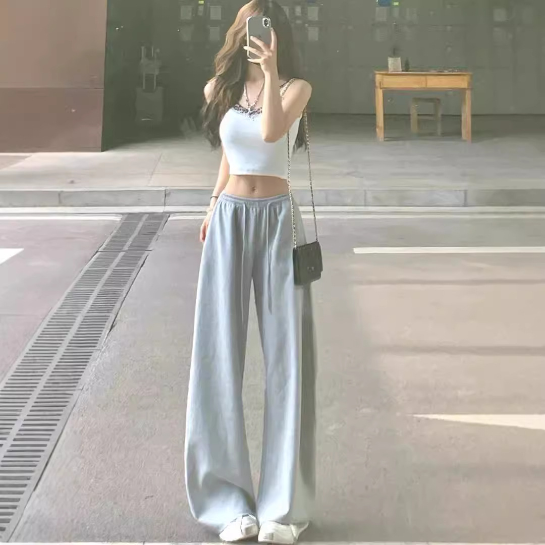 アメリカンギャル高腰カジュアルパンツ女性2024新作秋百合灰色ヨガパンツ痩せ運動微拉ズボン