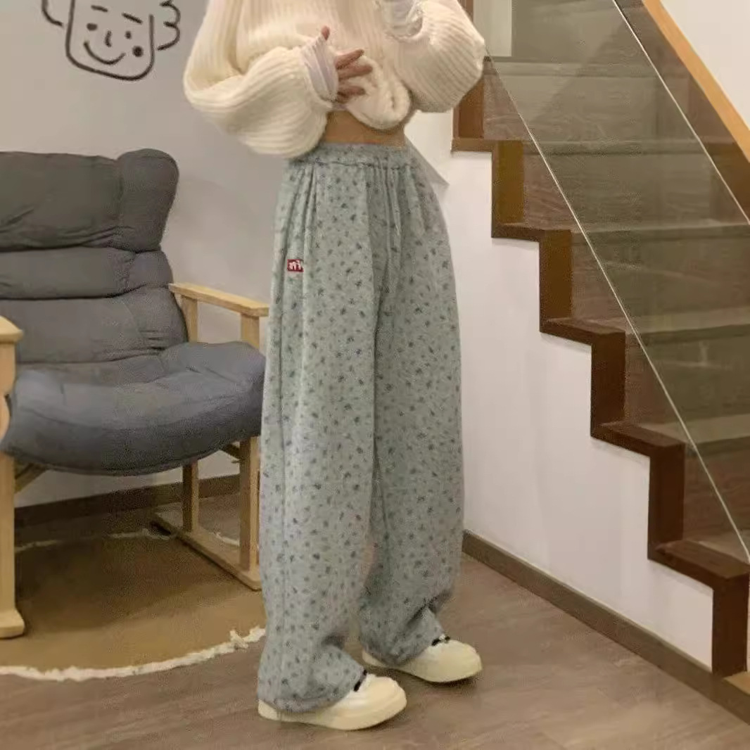 秋冬の新型ベルベットはカジュアルな高腰ストレートのゆったりした広脚ズボンins砕花怠惰なアメリカズボンの女性を厚くした