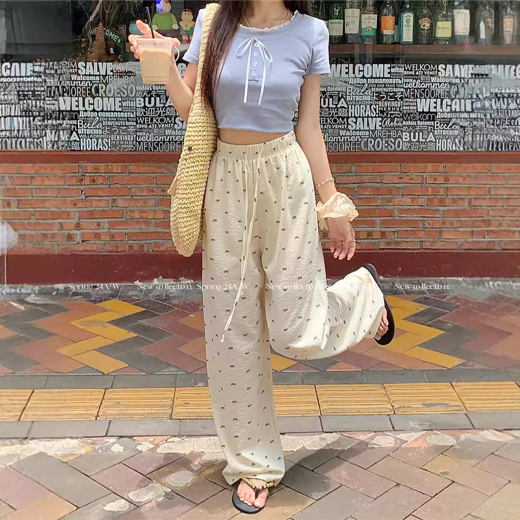 2024早秋の新型もち米ズボンの女性は腰が高くて痩せています。