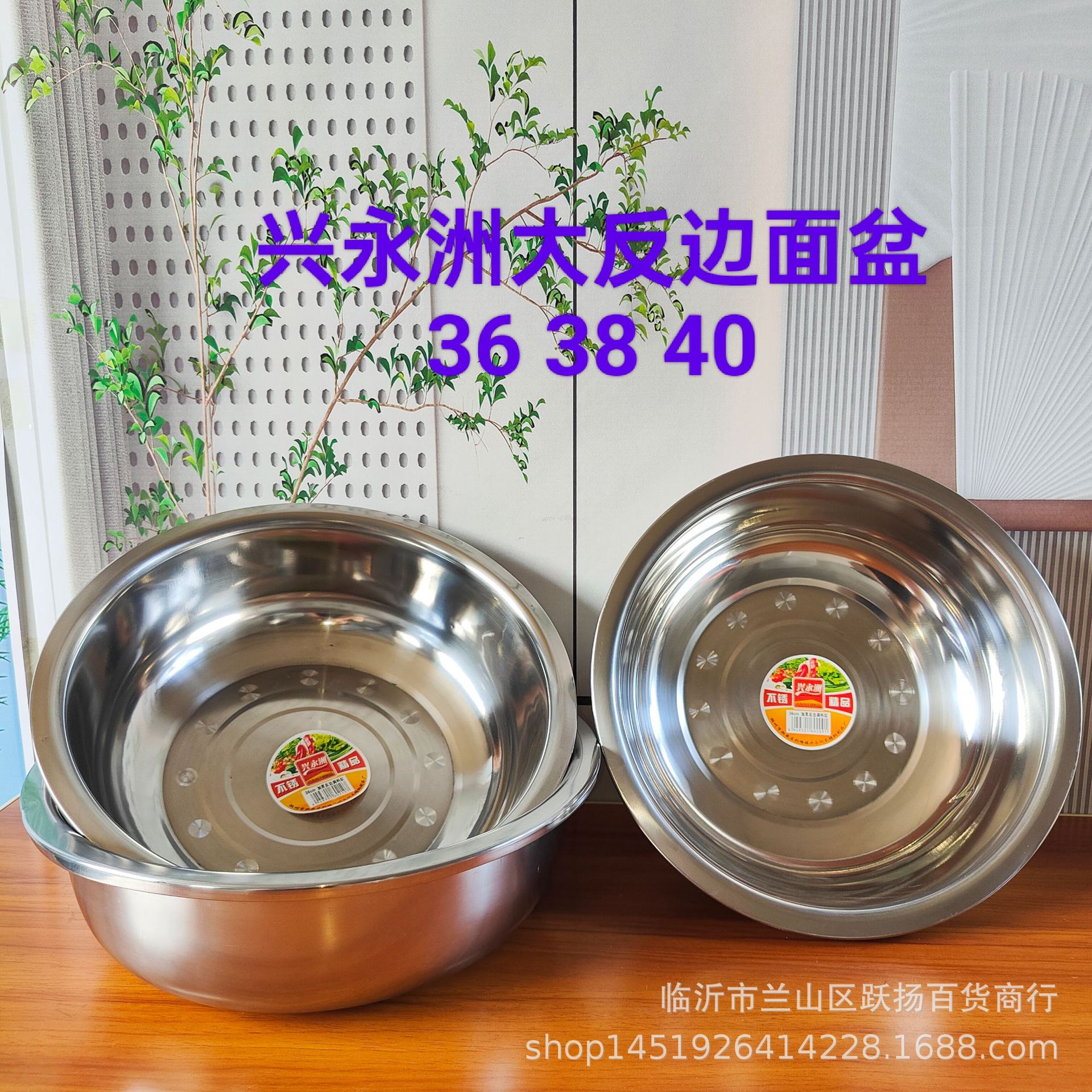 興永洲36厚さの大きい反対側の調味料のかめのたらいの野菜のたらいのステンレスのたらいの臨沂のデパートの露店の商品の供給源を増加します。