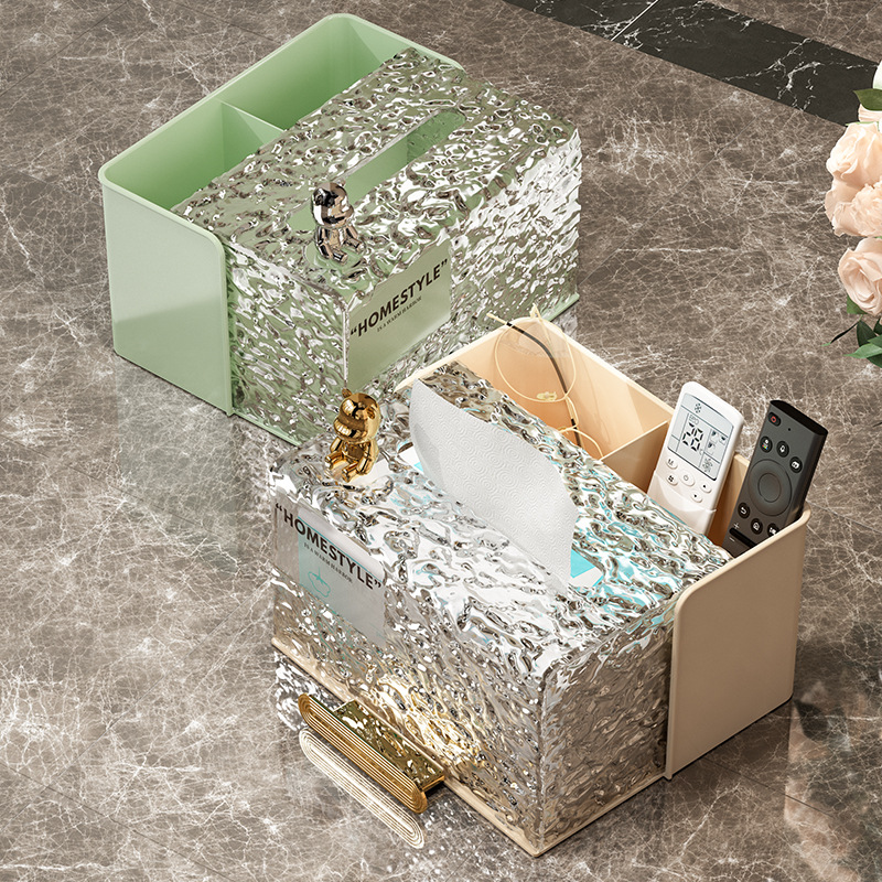 氷河の紋様のティッシュの箱の家庭の客間のデスクトップは紙の多機能のアイデアのリモコンの収納の箱を引き出します。