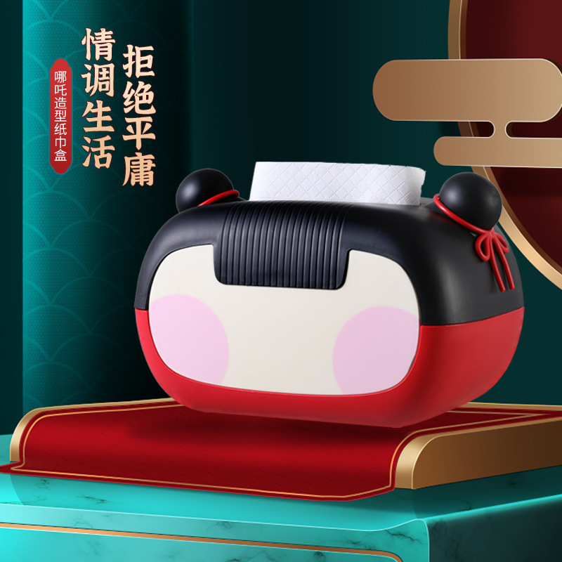 中国風ナタク型ティッシュケース内蔵スプリング昇降可能ティッシュケース多機能デスクトップ収納ケース
