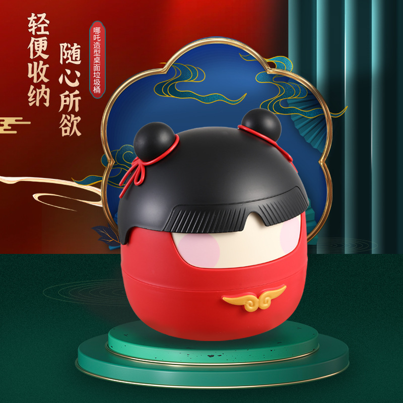 中国風の蓋付きデスクトップゴミ箱 Nezha ゴミ箱大容量学生寮フリップトップデスクトップ収納ボックス