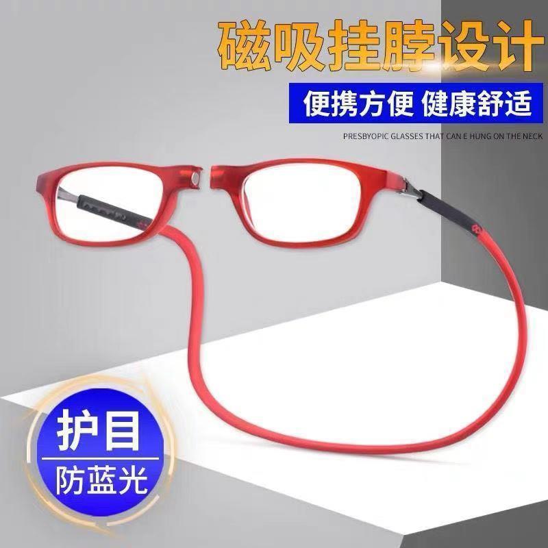 女性用マグネット首掛け老眼鏡、折りたたみ式ポータブル超軽量ストラップ、男性用ブルーライト磁気老眼鏡