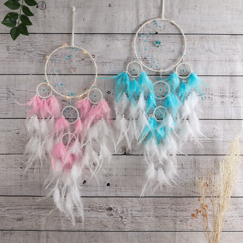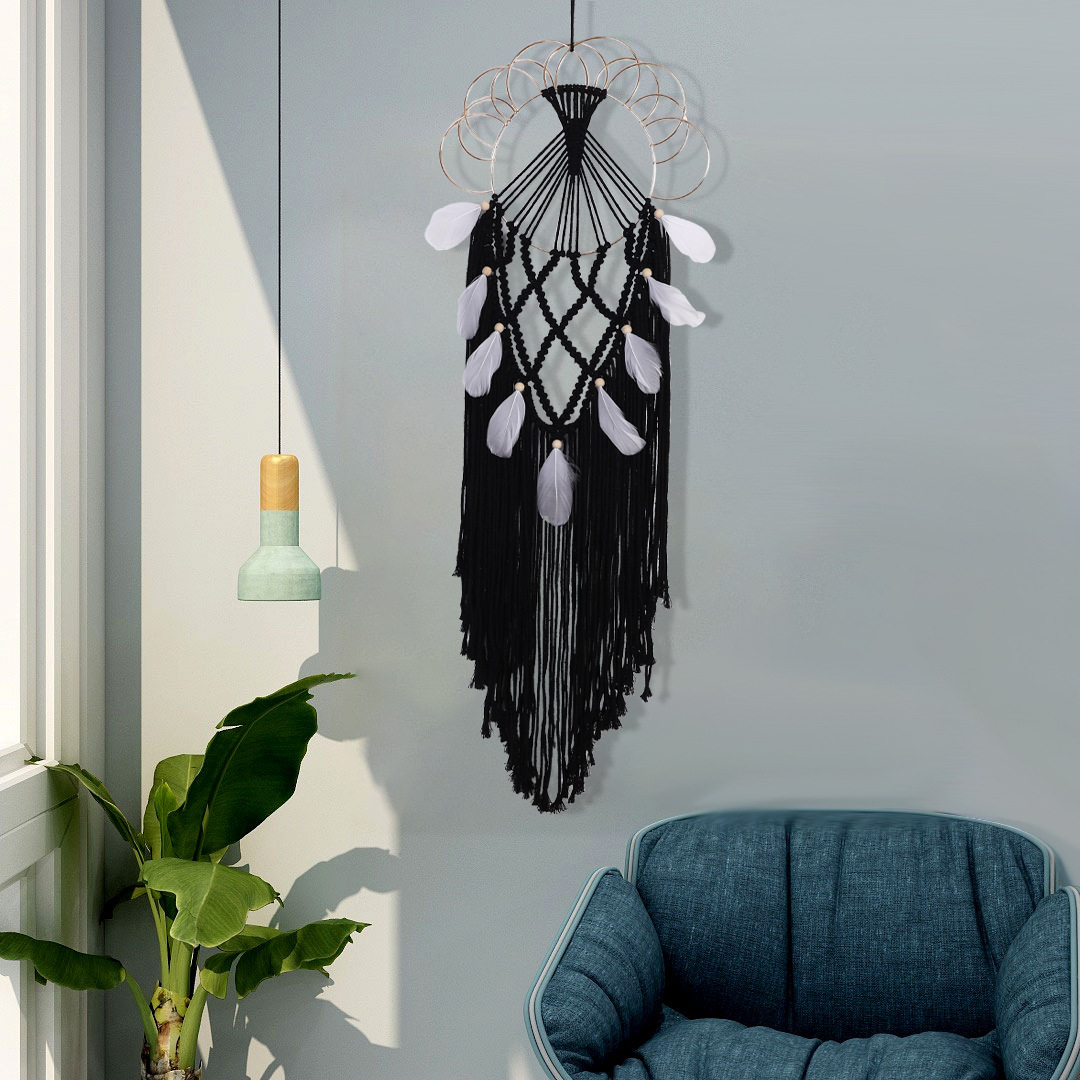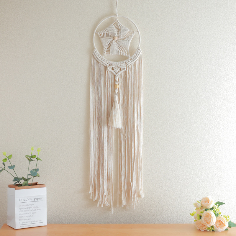 メーカー卸売り星月手作業で夢を捕るネット寝室のリビングルームの壁に壁飾りを掛けます。