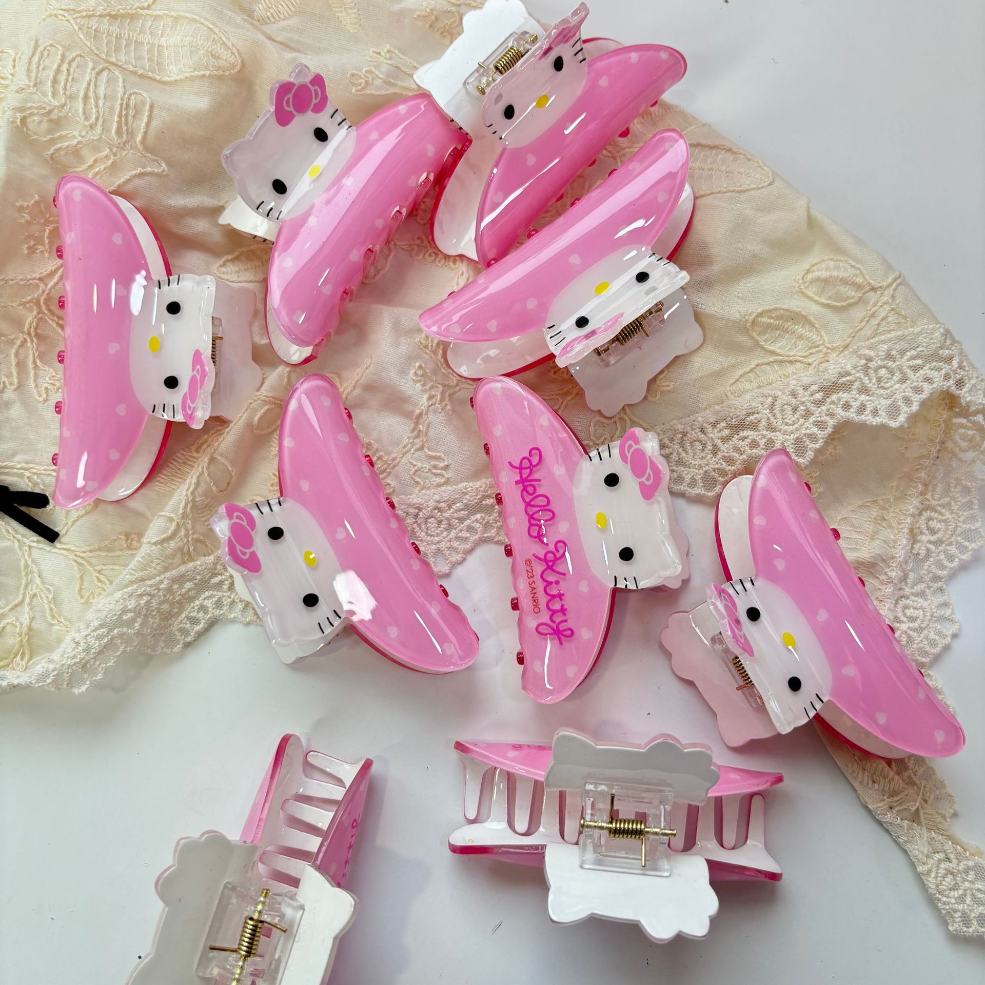 夏サンリオ KT 猫フラワーグリッタークリップかわいいスパンコールピンクリボンヘアバインディングサメクリップ甘いガーリースタイル