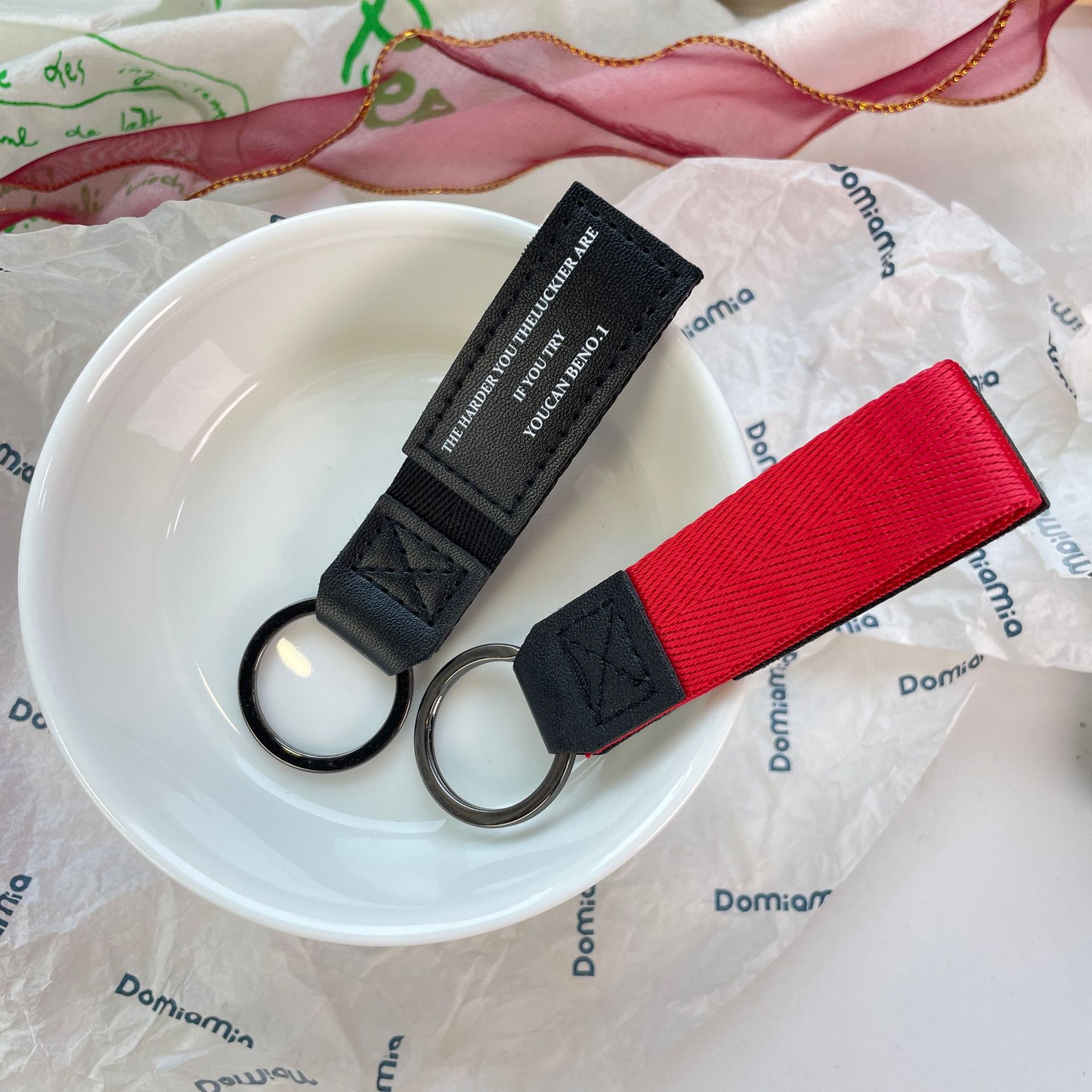かわいいアクセスカードホルダーキーホルダー長方形編組レザーロープクリエイティブカップル車のキーチェーンバッグペンダント
