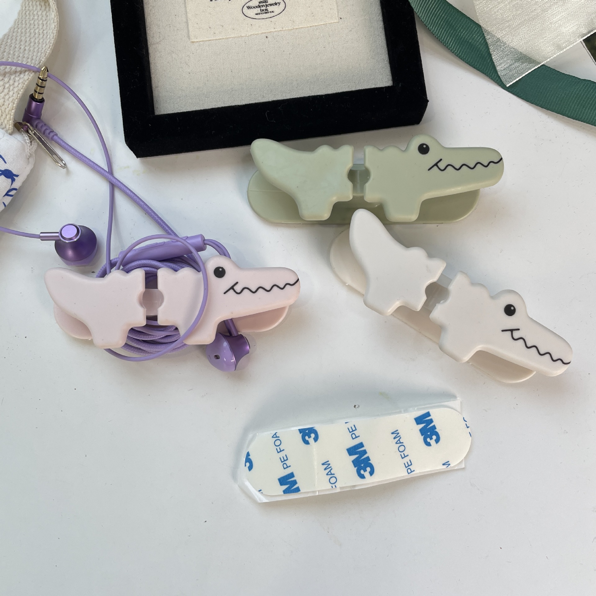 漫画の小さなワニケーブルオーガナイザーデータケーブル固定ケーブルワインダーデスクトップシリコンホルダーペースト充電ケーブル収納