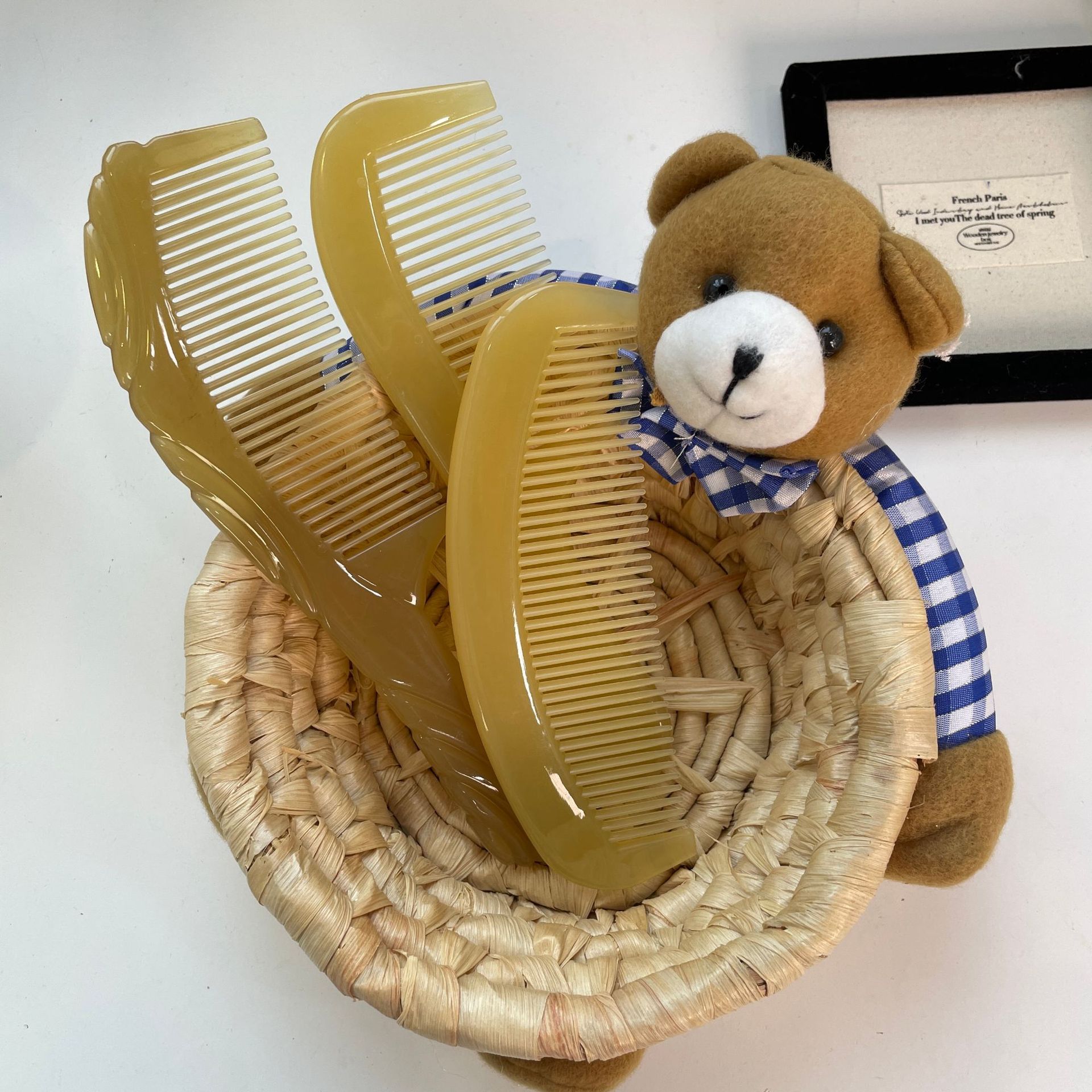 牛すじコーム、彫刻された三日月コーム、ハンドルレスマッサージコーム、ポータブルコーム、ヘアケアマッサージ頭皮経絡コーム、女性専用