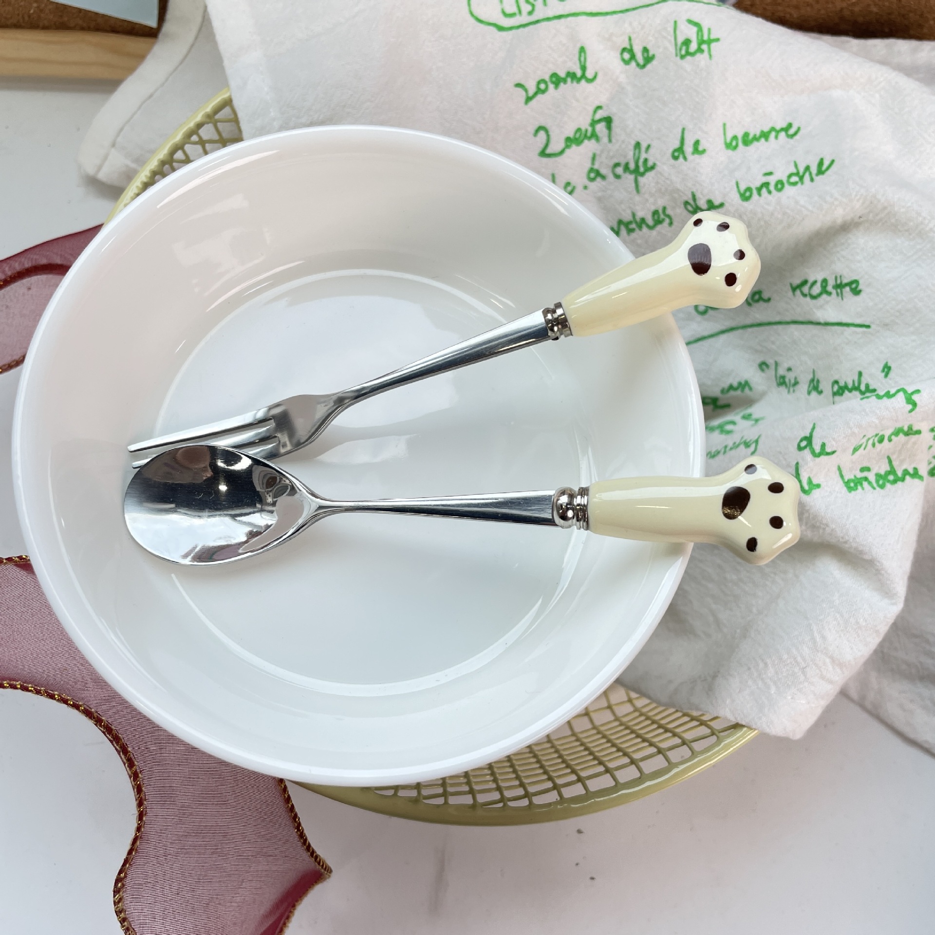 かわいいクマの足食器セラミックステンレス鋼クリームクマの爪スプーンフォーク漫画アイスクリームスプーン学生食器セット