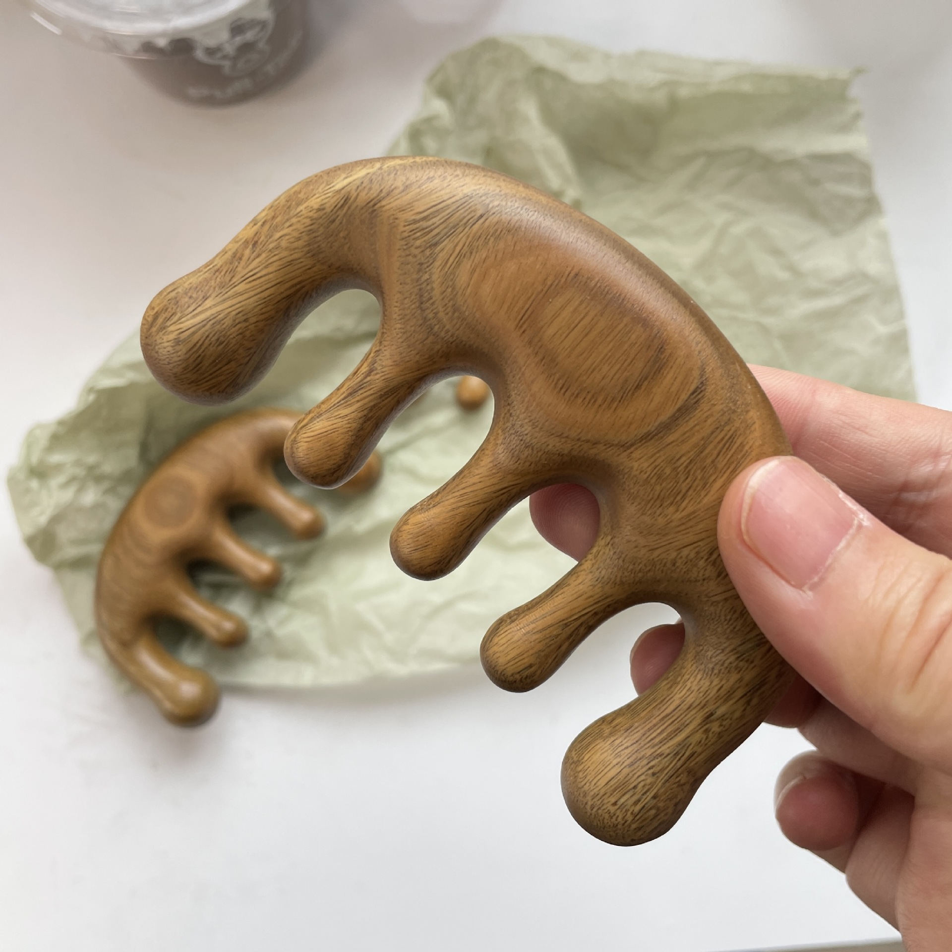 マッサージ櫛檀木頭部経絡櫛五歯頭櫛頭皮掻爬防止マッサージ器髪木櫛bh148