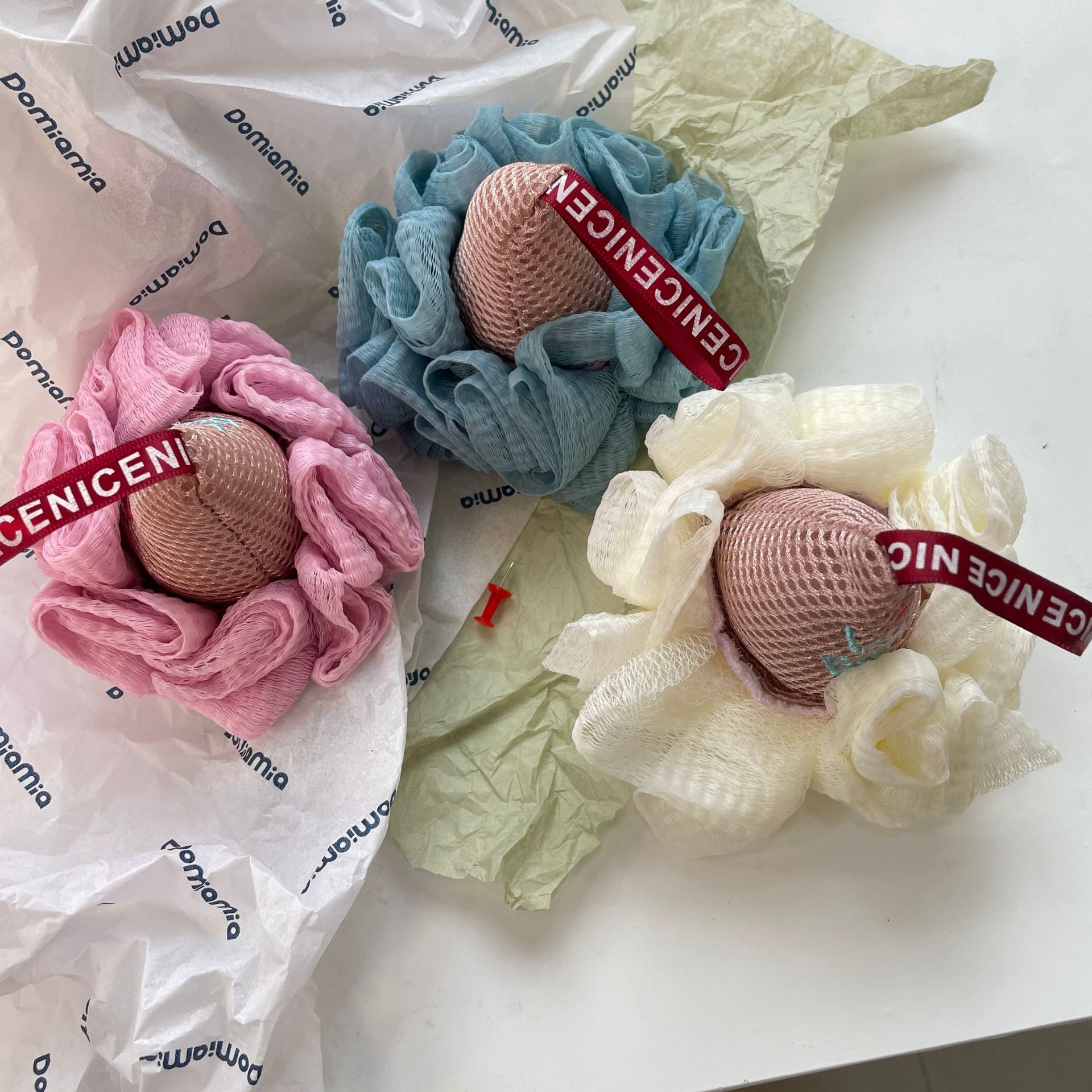 新しいアイスクリームの入浴ボールは散り散りにならないので、花を浴びやすいです。