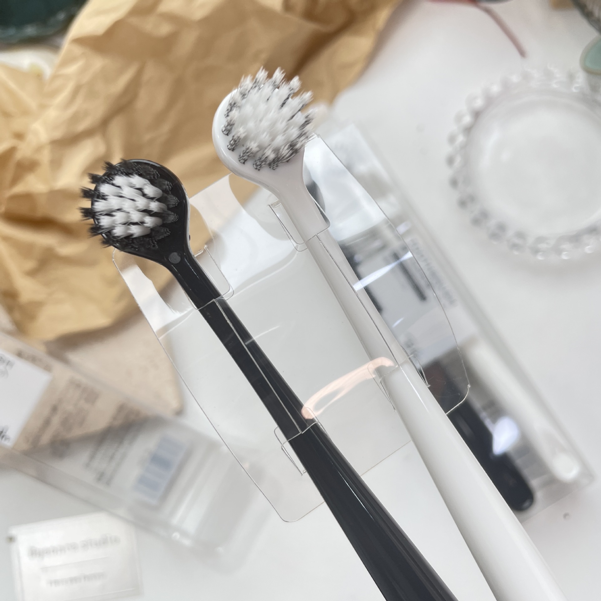 創意的な小さい丸い頭のタイの螺旋毛のカップルの歯ブラシの白黒は2本を配合して大人の竹炭の柔らかい毛の歯ブラシのbh155を詰めます。