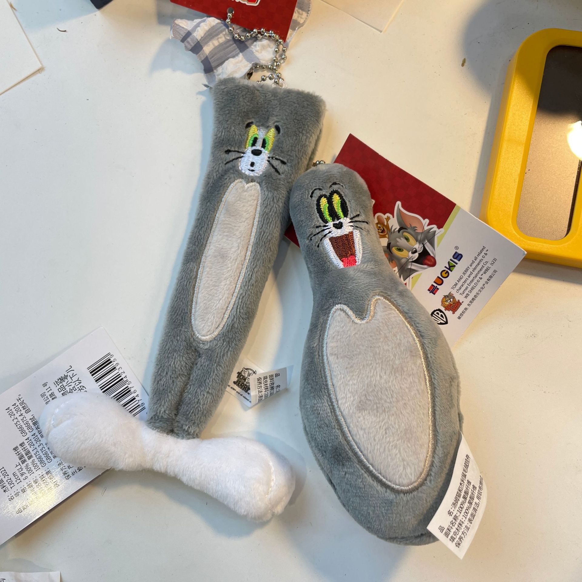 猫とネズミのストラップが可愛いです。ぬいぐるみのキーホルダーを掛けます。