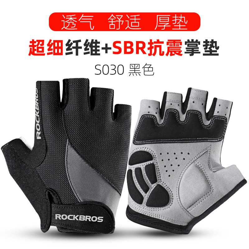 Rockbros夏の通気性の短い指の手袋の自転車の半分の指の騎乗の手袋の男女の経典のモデルs030