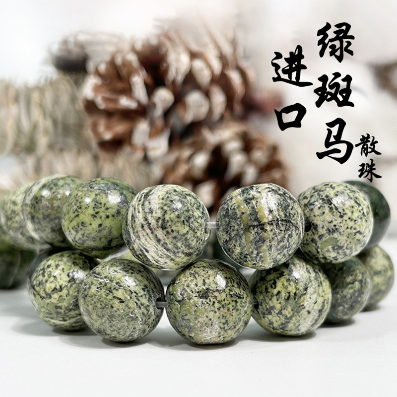 天然緑シマウマ石水晶散珠半製品手飾りdiy部品ブレスレット数珠緑縞ビーズ