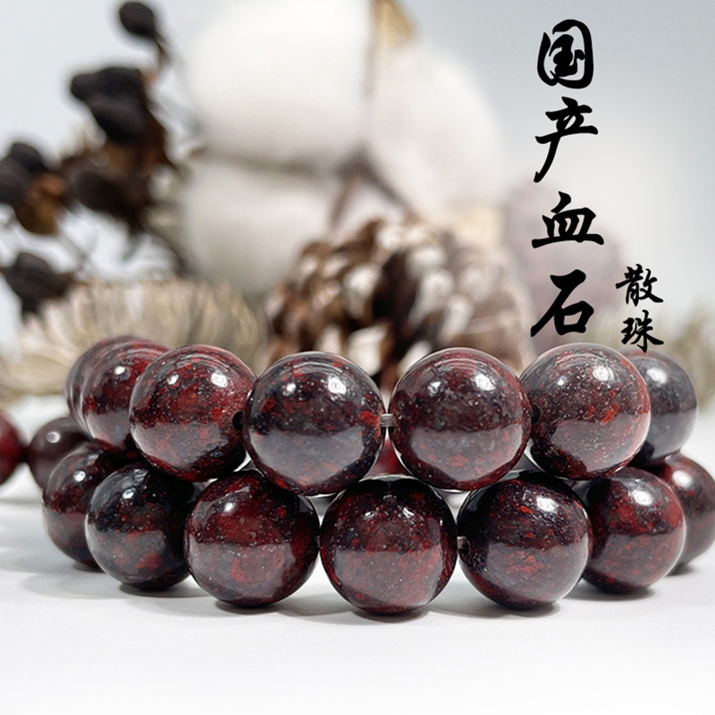 天然国産血石散珠半製品手飾りdiy部品ブレスレットビーズ花紅石手串散珠