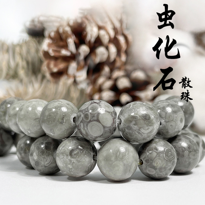 天然石散珠半製品手飾りdiy部品虫化石散珠文遊び麦飯石玉
