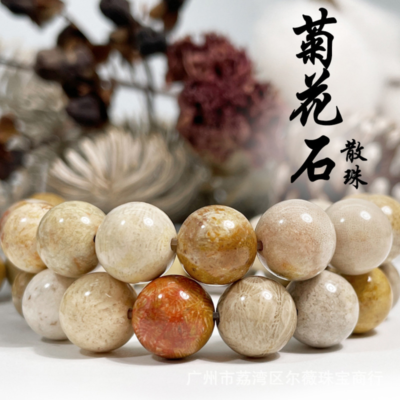 天然菊玉散珠半製品手飾りdiy部品サンゴ玉ビーズ卸売り水晶玉