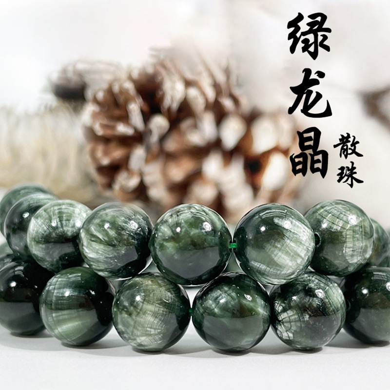 天然緑龍晶散珠半製品手飾りdiy部品ブレスレットビーズ水晶散珠卸売り