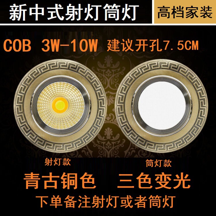 智閃新中国式ledダウンライト天井灯青銅灯猫眼埋め込み式銅灯開孔7.5亜鉛合金スポットライト
