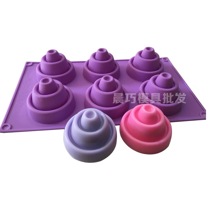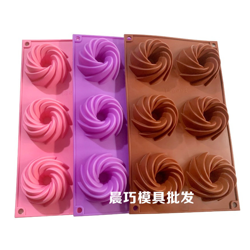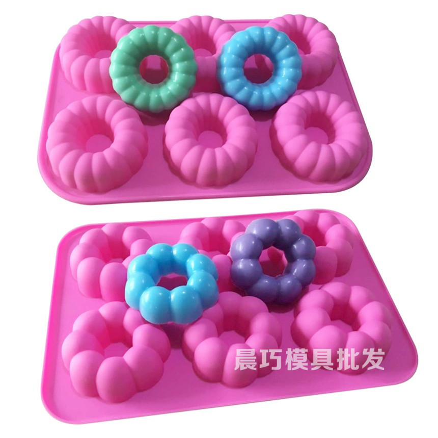 中空ドーナツクッキープリンシリコンケーキ金型六穴旋風竜巻手作り石けん金型を供給する