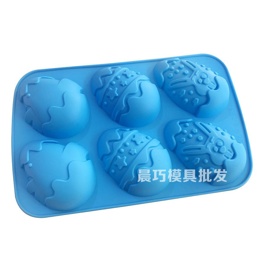 焼き皿に入れることができる電子レンジ六連卵形シリコンケーキ金型怪卵アヒル卵イースター手作り石けん金型