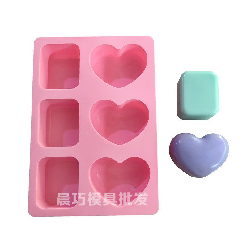 シリコンケーキ金型6連手作り石鹸焙煎砥石方眼愛型角形ハート型厚版