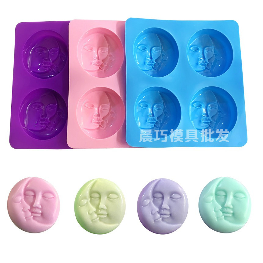 4連円形両面顔ケーキ金型月半分顔金型焙煎金型diy手作り石けん砥石