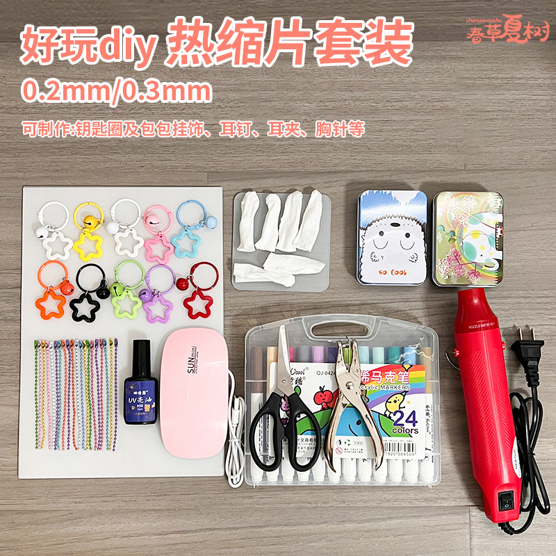 親子手作りdiy材料包熱収縮片キーホルダー名前札ブローチ熱可塑片セット熱風銃