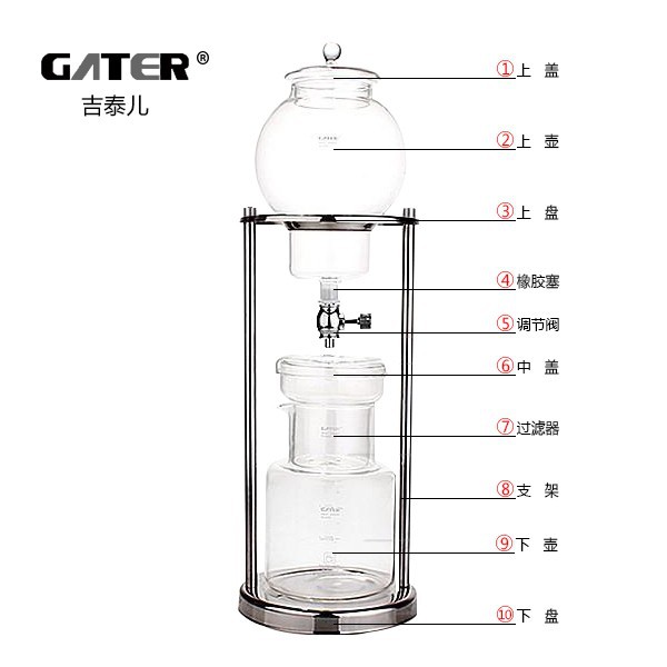 GATER アイスドリップコーヒーポット オリジナルアクセサリー BD-6 上部ポット、中部カバー、下部ポット アイスドリップアクセサリー ガラススペアパーツ