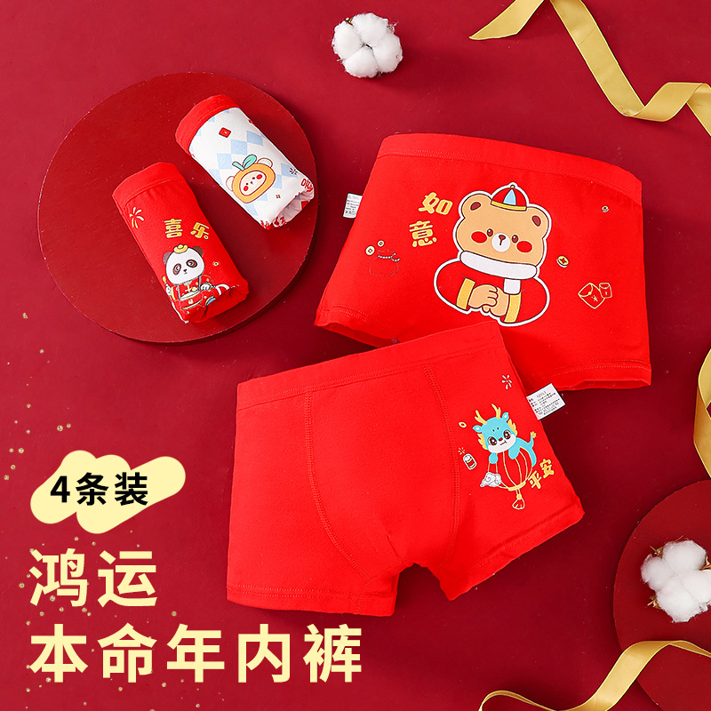 男の子の下着の純綿の男の子の中で大きい子供の本命年の大きい赤い下着の子供の四角のズボンの卸売りは代行します。