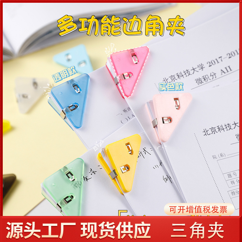 マルチカラーの三角形コーナークリップ、多機能学生ブッククリップ、試験用紙保管アーティファクトフォルダー、情報請求書バインダー