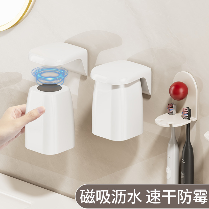 磁気マウスウォッシュカップ、パンチフリーブラッシングカップ収納ラック、壁掛け歯ブラシカップ、逆さ歯ブラシカップ、洗浄カップ収納