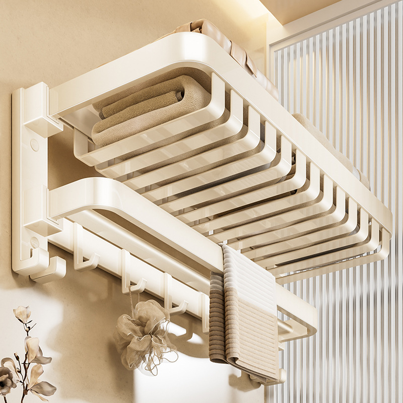 パンチングなしのバスルームタオルラック、クリームスタイルのバスルーム収納ラック、折りたたみメッシュバスケット、バスタオルラック、ハードウェアペンダントセット
