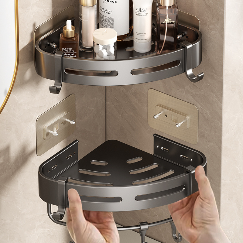 銃灰トイレ棚三角壁壁掛け式穴なし浴室トイレ手洗い風呂場収納