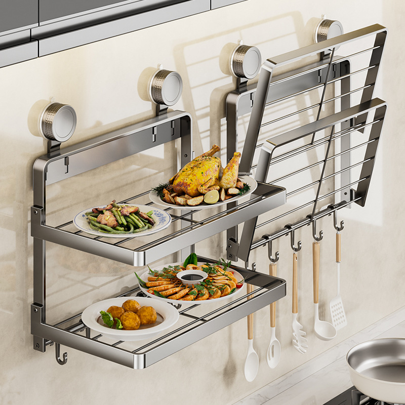 吸盤厨房備物棚多層おかず皿壁掛け穴なし多機能折りたたみ収納棚