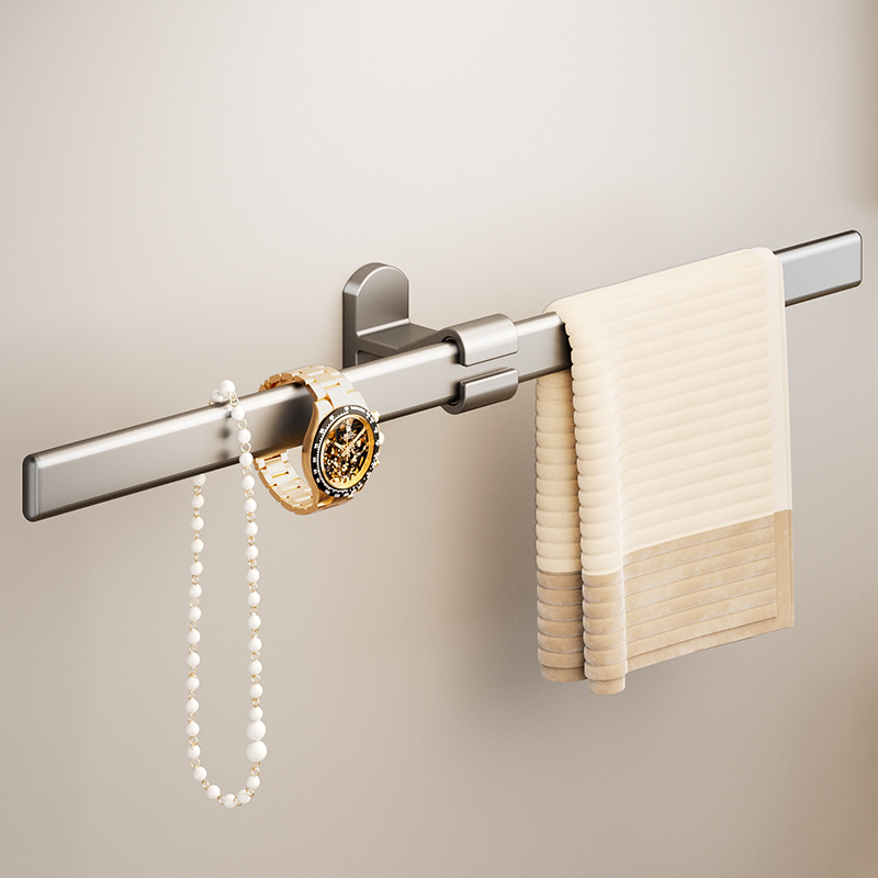 ガングレーのバスルームパンチフリータオルバー浴室壁掛け格納式棚トイレトイレタオルラック